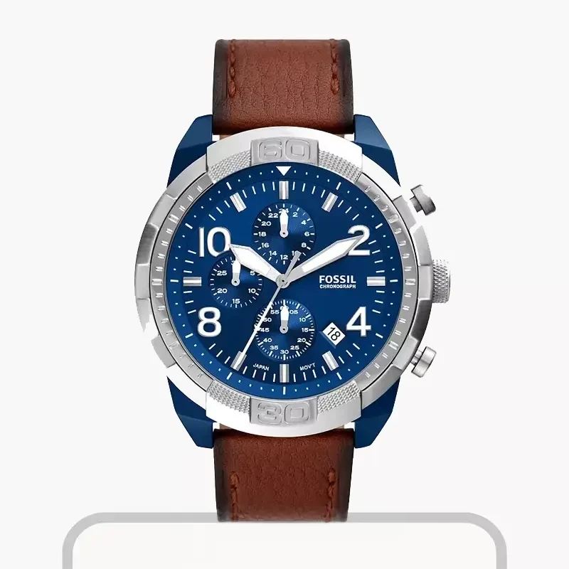 Fossil Bronson Chronograph Blue Dial Leather Men’s Watch- FS5829