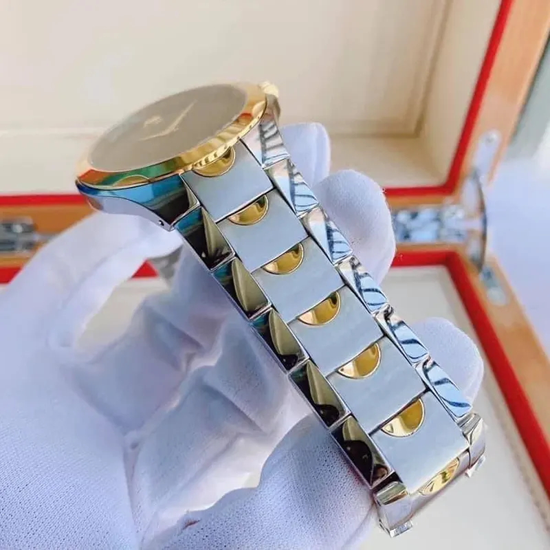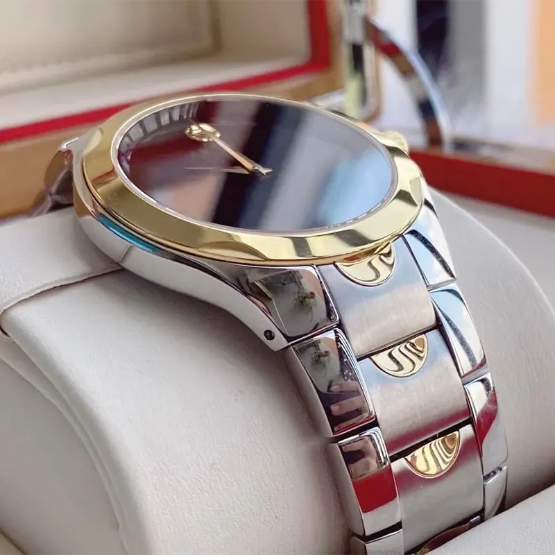 Scratch-resistant, two-tone finish, iconic Movado dot